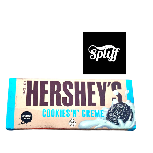 Chocolate and Cannabis. What else beats this delicious mouth-watering combination? New Hershey’s Cookies N Cream bars are now cannabis infused with 600mg per bar. The nations favorite chocolate meets the nations favorite Cannabis Dispensary, Brought to you By Spliff Nation.